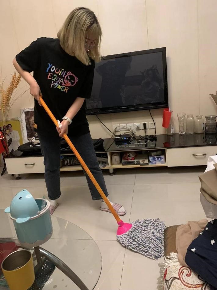 杜婧正在做家庭大扫除