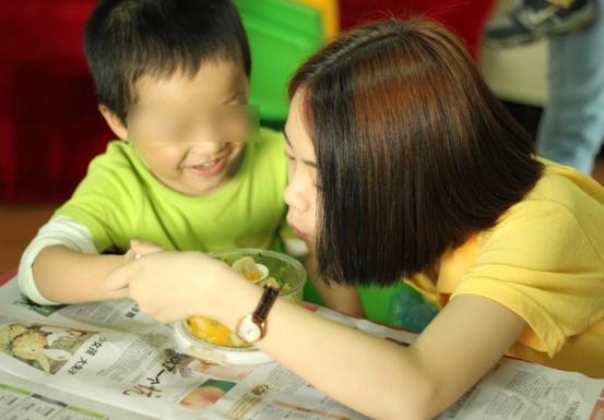 志愿者和孩子们都是一对一的看护,其中也包括服务团带队老师杜建清,小强更是调皮地指着杜老师说:“你,过来!”,虽然语气略显生硬,但从刚开始的拒绝接触到现在的主动叫人,志愿者小小的快门里呈现的这一瞬间无疑对所有人来说都是纪念。