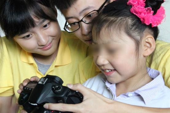 ?? ?“看,这是谁?”“认识吗,这又是谁?”志愿者罗毅半蹲着,指着相机里王硕自己的照片问这个已经八岁大的女孩,王硕只是回头笑了笑,她总是在志愿者拍照时好奇的看着,志愿者王晓悦在问她 “知不知道这是什么”时惊奇的发现她知道这是相机,并想不到平时喜欢画画的她对相机也这么感兴趣。