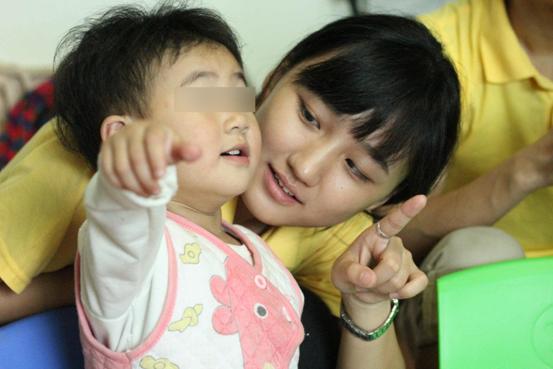 志愿者教孩子认知学习