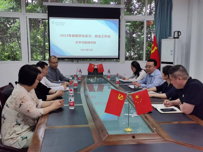 为顺利推进2020级学生实习、就业工作,我院于2023年5月22日上午在慧智楼80528召开2023年暑期学生实习、就业工作会,学院党委书记于频、院长殷俊、副书记程元元、副院长郑笑眉,汉语言文学系主任周之涵、网络与新媒体系主任姚琦、新闻系主任张玉霞、广播电视系王瑞林、广告系主任王凌峰参加了会议,会议由殷俊院长主持。