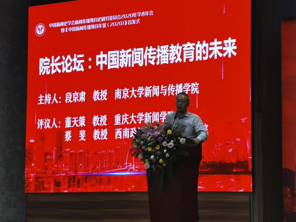 11月14日,由中国新闻史学会新闻传播教育史研究委员会主办,西南政法大学新闻传播学院承办的中国新闻史学会新闻传播教育史研究委员会2020年学术年会在重庆雾都宾馆召开。来自全国主流新闻院校的218位专家学者汇聚一堂,深度探讨“新文科背景下的新闻传播教育”。我院院长王仕勇教授应邀参加年会,并在院长论坛和“新闻传播教育的历史和未来”分论坛做主题发言。