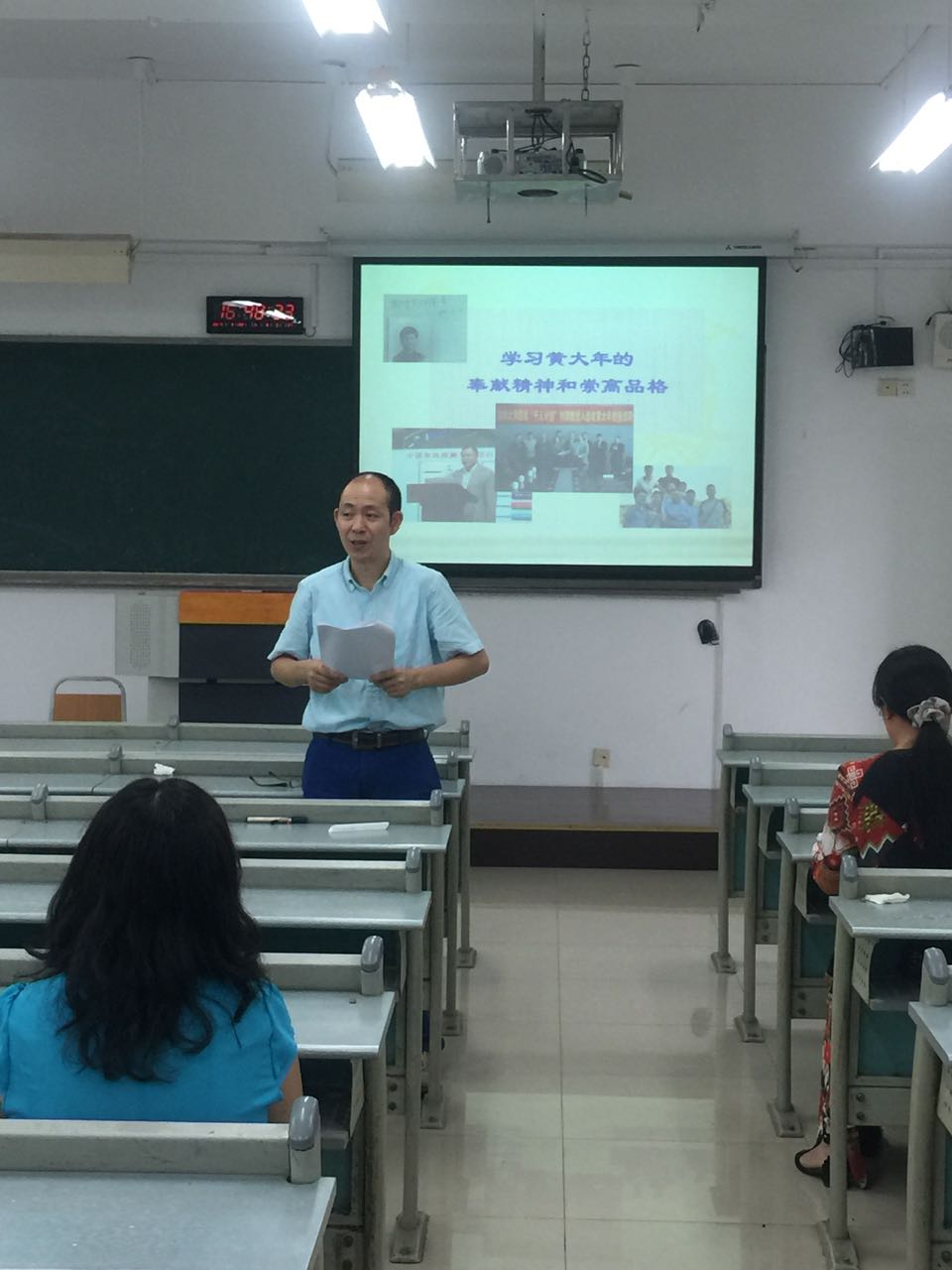 为迎接党的十九大和学校第三次党代会的召开,2017年9月22日,文新学院分党委在90625教室召开了党员大会。分党委书记段庸生为全体党员师生讲了一堂有意义的党课,主要内容包括学习习近平总书记“7.26”重要讲话精神,以及学习黄大年的先进事迹。