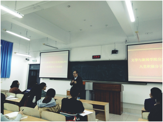 11月3日-11月4日,文学与新闻学院分党校在博智楼7208教室举行2017年第二期入党积极分子培训班,学校机关党委书记、组织部副部长米密,学院分党校校长段庸生书记,培训班班主任肖婷老师和132位入党积极分子参加开班仪式。