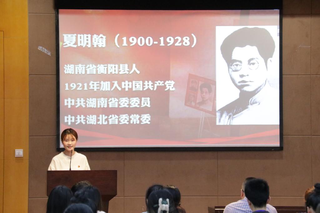 活动现场,来自文新学院教工一支部、教工二支部、学生一支部、学生二支部、研究生支部的选手们分享了《为了忘却的纪念—人民永远的恩来总理》、《初心不改有后人—革命先烈夏明翰》、《为人民服务》、《最小的烈士“小萝卜头”》、《恰同学少年,风华正茂》、《邓颖超妈妈的一生》等党史故事。研究生支部的闫超飞同学以《扭转时局铸奇功,国共合作驱日寇》为题的党史故事演讲,声情并茂,振奋人心,荣获一等奖。