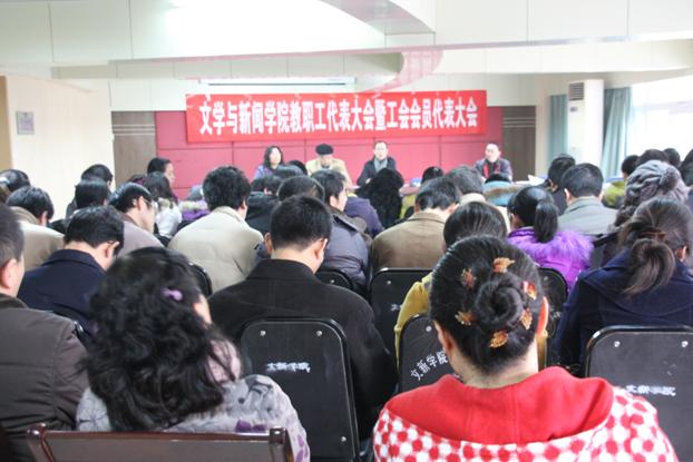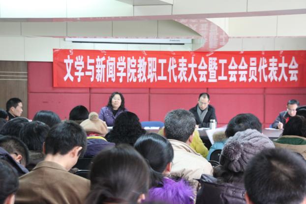 12月25日下午2:00,文学与新闻学院二届二次教职工代表大会暨工会会员代表大会在慧智楼90526会议室隆重举行,文学与新闻学院党政领导以及学院全体教职工出席了此次会议。大会由学院党总支书记助理谢瑞军主持。