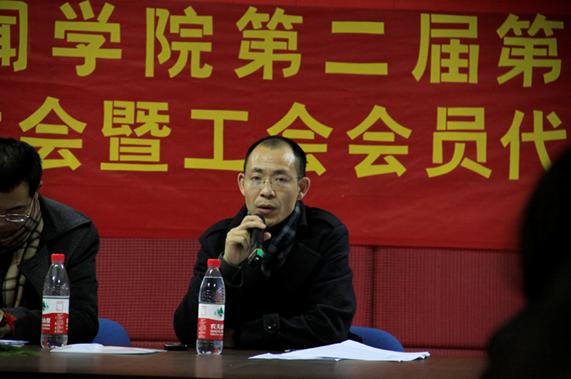 校工会常务副主席陈晓东作了讲话。他对学院“两代会”的顺利召开表示祝贺,充分肯定了学院一年来在各项活动中取得的成绩。他希望学院教代会、工会正确行使审议建议、审议通过、审议决定、评议监督、检查督促等“五项职权”,进一步发挥维护、建设、参与和教育职能,更好的完善学院民主管理制度,实现学院全面快速发展。