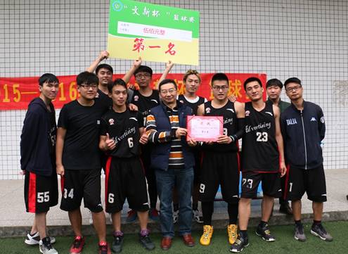 伴随哨声的响起,现场气氛活跃起来。决赛在13级广告、广电两班之间展开,双方很快进入激烈的角逐,队员们积极投入,全力以赴,奋勇拼搏。最终13级广告班以2分优势夺得桂冠。在随后的闭幕仪式上,李书记回首连日以来运动员们的精彩表现,并给予他们充分的肯定。游飞燕主席宣读获奖队伍名单以及优秀队员名单,并由李书记为之颁奖。我院“大四联队”获荣誉奖,12级广告一班的丁锐,13级广告2班的陈浩,13级广告班的邓家豪等7名同学获优秀队员称号。冠军队13级广告班获荣誉证书和奖金500元,13级广电班和14级广电班也相继获得了荣誉证书。最后,主持人宣布“文新杯”篮球赛圆满落幕,全场师生合影留念。通过多场赛事,运动员们永不言败、奋斗拼搏的精神深入人心。