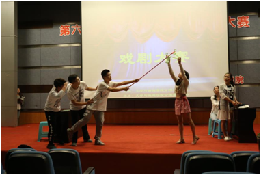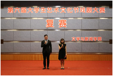 戏剧大赛由祝江玲与胡为亮同学担任主持。比赛中,每支队伍向大家展示了风格迥异、形式主题有趣而又新颖的戏剧表演。通识学院的同学带来话剧《屈原》向我们讲述了一位不一样伟大的爱国诗人屈原,环境与资源学院的同学们带来的《作家之死》则为我们深刻展现了当代作家一些腐朽老套狗血的创作风格。财政金融学院则带来了话剧《宝黛初会》将一见钟情表现得合情合理、入情入味。其中文学与新闻学院向大家带来了《最后一片叶子》、《你好,张淑芬》、《何罪之有》三场表演,在表演中向大家诉说着人性的真善美、以戏剧反映社会中人性浮躁的现状。三支队伍的表演者都将个人沉浸于角色之中,用心诉说演绎着每一个细节点滴,最终在评分上获得了十分卓越的成绩。