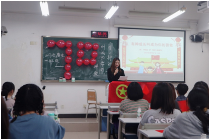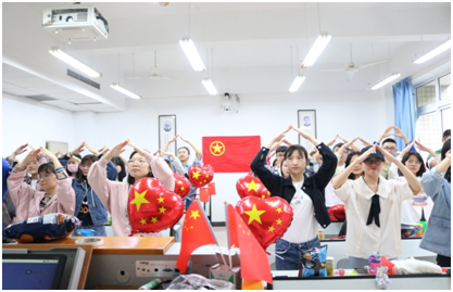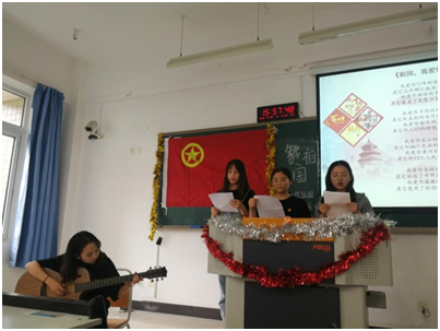其中,17汉文团支部将吉他和朗诵相结合,活动形式新颖,现场氛围热烈;18广电一团支部通过朗诵爱国诗歌《歌颂祖国》表达了对祖国母亲的热爱,展现了青年大学生的蓬勃朝气;18汉文二团支部全体团员演绎了精心编排的手语《国家》片段,用最美的肢体语言传达了对祖国的热爱;18广告一团支部在“祖国我想对你说”环节,将当代大学生对祖国的热爱进行了热切表达。