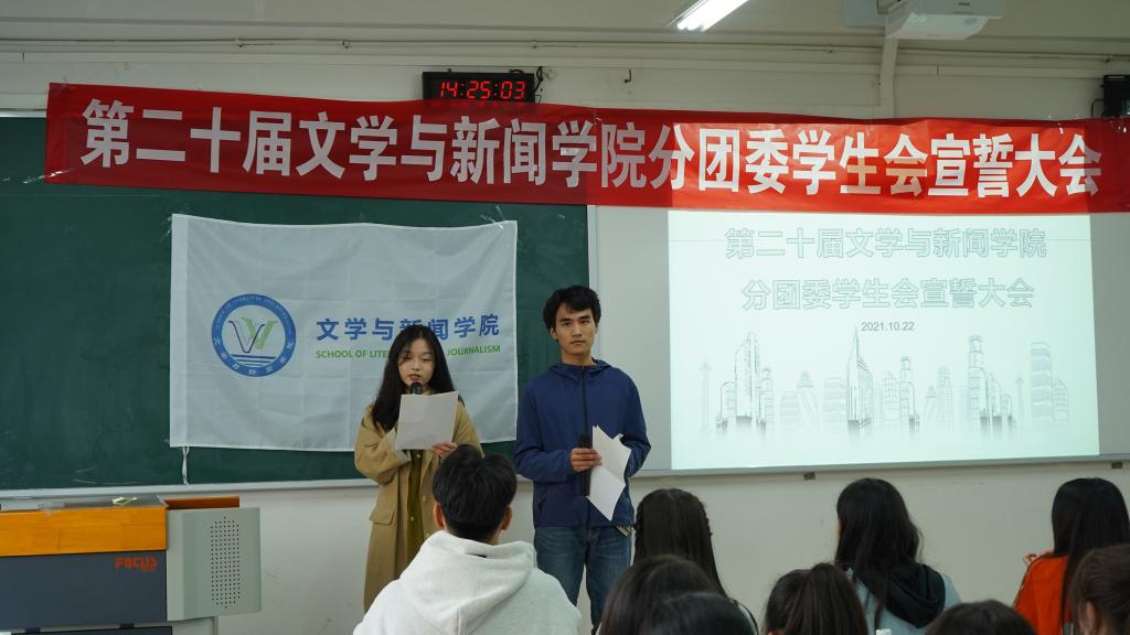 下午两点,宣誓大会在B406举行,主席团李雨馨、孙宇斌等同学带领全体成员宣誓,大家用庄严而洪亮的宣誓表达自己将会热爱学生会工作,服务好同学的决心。