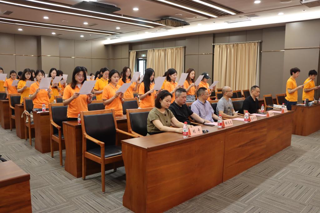 全体出征人员在主持人的带领下承诺:“文道相彰,传习日新,勠力同心,踔厉奋进,全心全意为人民服务,用拼搏奋斗担起个人责任与社会责任,无畏实践检验,无惧时间检验,在实践锻造中不断增强青年人的志气、骨气、底气。”