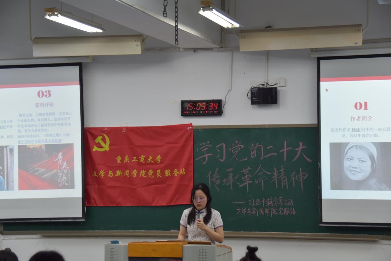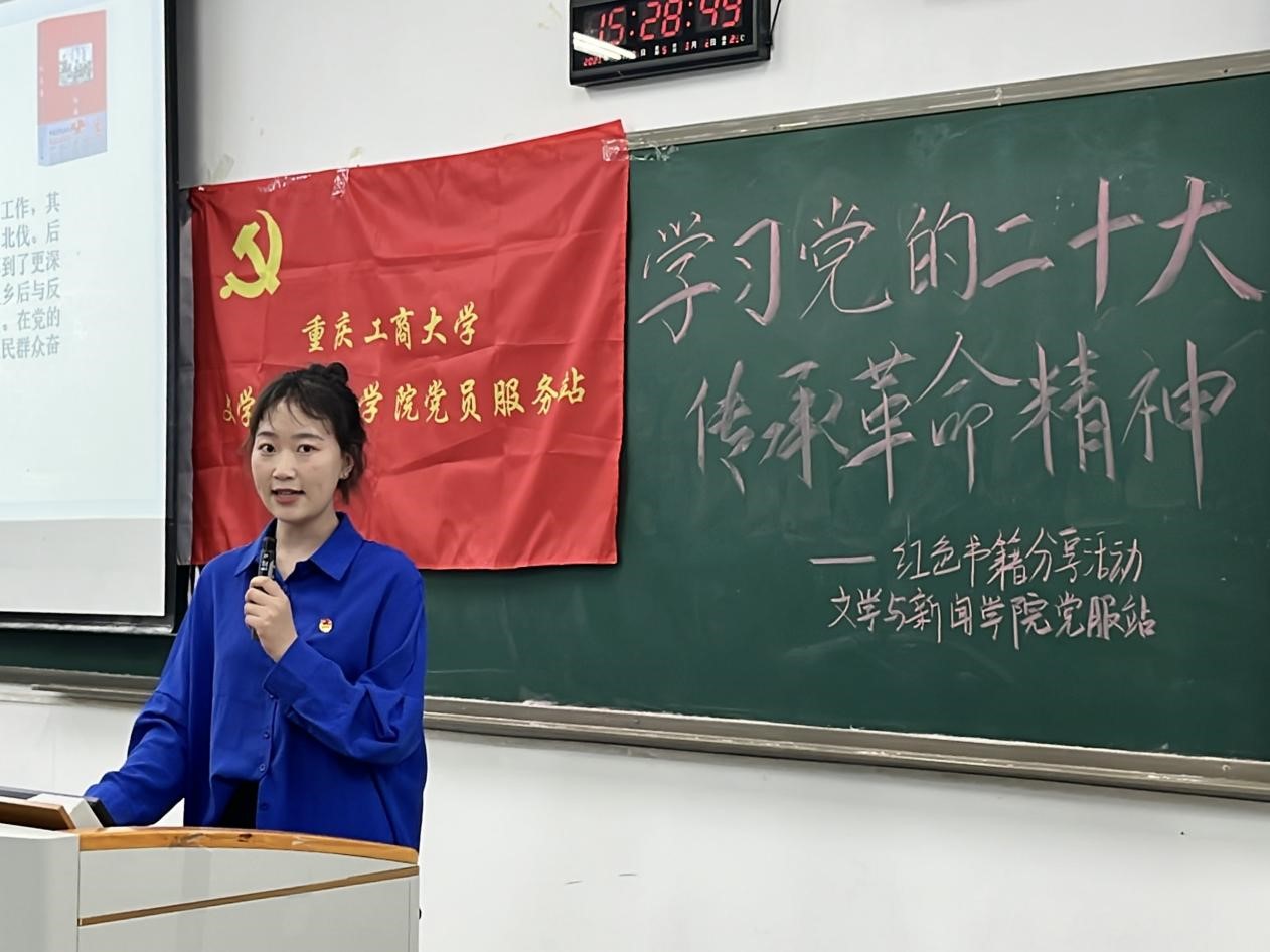 谆谆分享,薪火相传。2023年4月21日星期五15时至17时,文学与新闻学院党员服务站于慧智楼09226教室举办了“学习党的二十大,传承革命精神”红色书籍主题分享活动。
