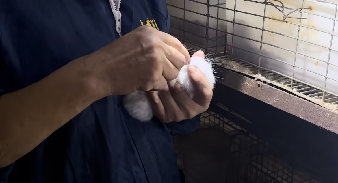 养殖人员对幼兔注射营养液