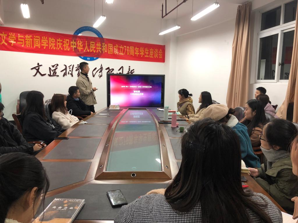 为培养同学们阅读的习惯,提高大家对专业知识更全面的认识,同时提供一个相互交流、分享读书感受的平台。文学与新闻学院研分会于2019年12月10日18:00在主校区慧智楼90205举办了读书分享交流会。文新学院研分会主席、部长及成员参与了本次活动。