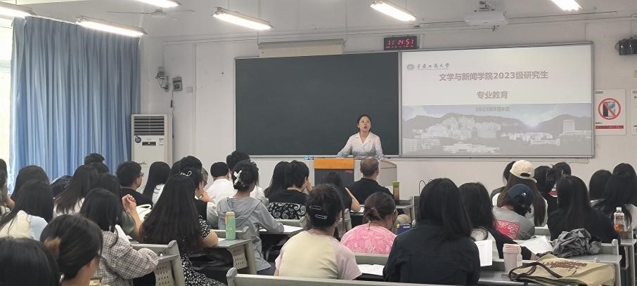 为引导研究生新生尽快转换身份、融入新环境、找准自身定位,9月8日上午10点30,文学与新闻学院2023级研究生新生入学专业教育在慧智楼90624教室召开。学院党委书记于频、党委副书记、院长殷俊、副院长邓伟、教师代表王凌峰出席会议,2023级全体研究生新生参加了这次入学专业教育。会议由文学与新闻学院副院长邓伟主持。