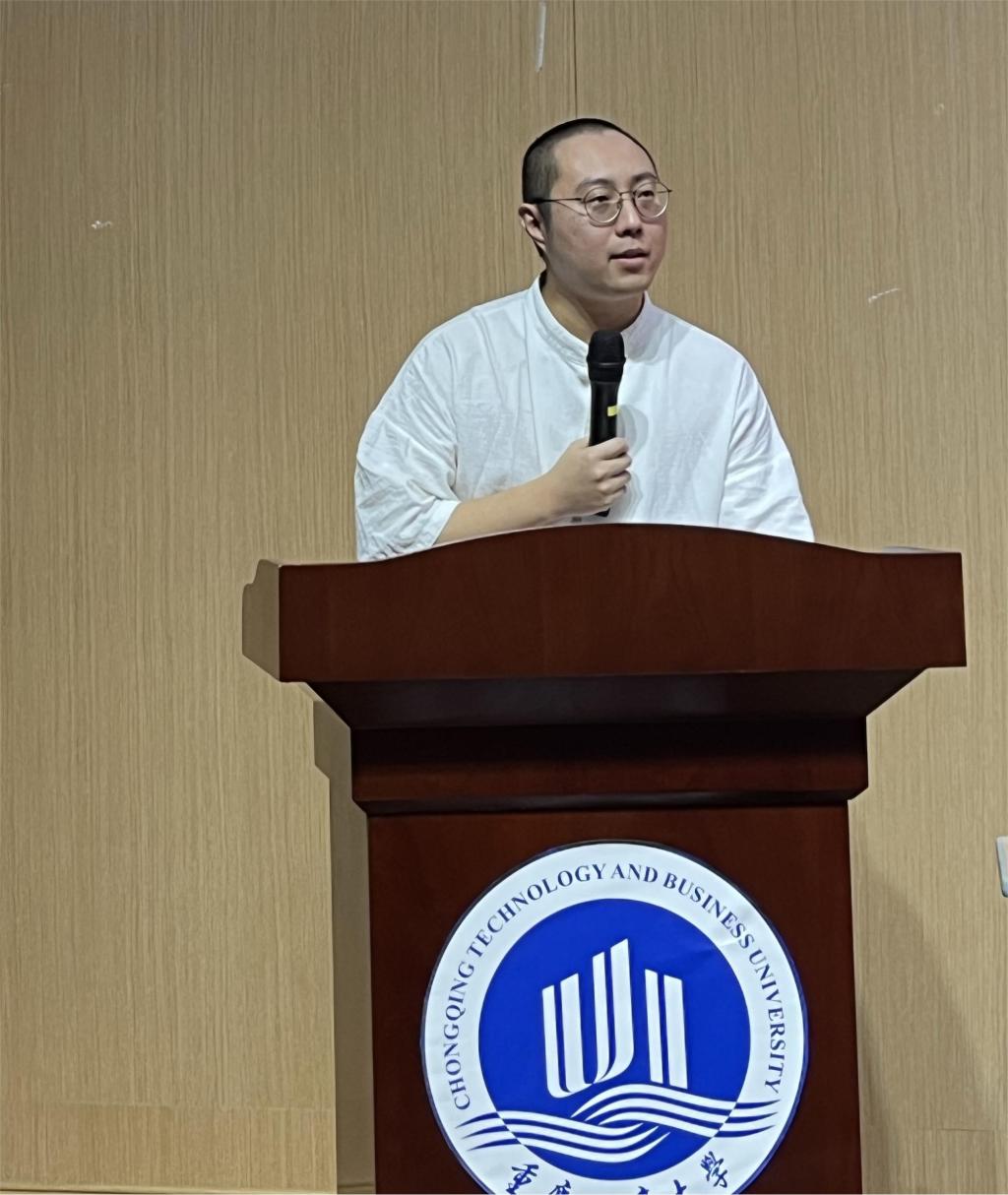 接下来,由姚琦博士作为导师代表致辞。他谈及自身求学之旅,在充满机遇与挑战的时代,学术研究是一项需要坚持和奉献的事业,不仅在个人成长中给予我们机会,还使我们有能力为社会做出贡献。他希望2023级新生时刻保持对学术的热忱与社会责任感,立足社会。时刻谨记理论研究与实践相结合,扎根学术研究与导师密切沟通,维护良性知识循环。