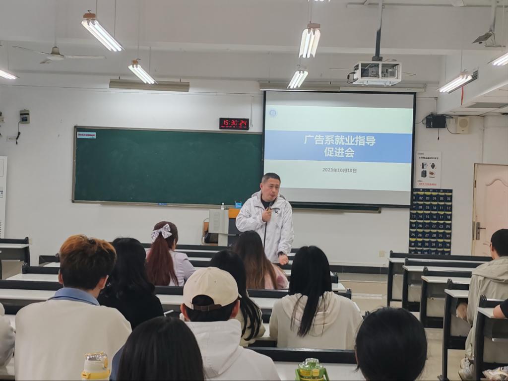 10月10日,广告学系召开的就业促进会上,学院党委副书记程元元介绍了如何应对不同的公司修改自己的简历,同时介绍了近期在学校发布的一些招聘信息,鼓励同学们多关注学院发布的公司招聘,抓住十月这个找工作的黄金时机,增加自己的就业机会。系主任王凌峰老师围绕就业形势、就业政策进行了分析解读,就毕业生关心的签约流程、找工作渠道等问题进行了详细讲解并给出了具体建议。