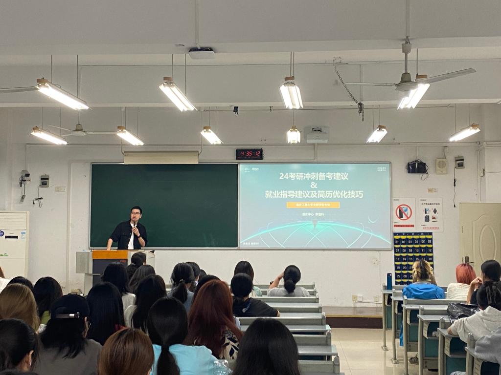 9月26日,汉语言文学系召开的就业促进会上,系主任周之涵老师指出部分同学对双选会不上心、走马观花似的游览等问题,希望同学们提前做好简历、把握每一个机会,为自己的未来负责;王彦杰老师提出要善于利用导师、辅导员等师资帮助优化简历、在面试时同学们需额外注意容貌、着装等问题,切勿在第一印象上丢了分;随着考公考研时间的迫近,王老师建议同学们应做好更细致的实践规划,在备考上做到提速增效;辅导员陈思燃老师提醒同学们要有主动意识,主动寻求建议和帮助、主动投递简历,要学会充分利用现有资源。