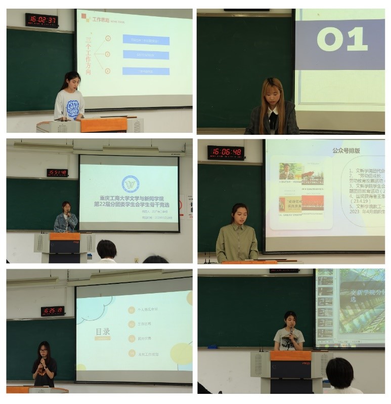 大会在学生会主席周静雯的开幕词之后正式开始。会上,首先由程书记回顾我院往届学生会各部门的优良成绩,对往届学生会的辛勤工作给予了充分肯定,对各位即将上任的学生主席提出了殷切希望。希望各位学生主席坚持不懈、以身作则,不仅要在工作中有雄心还应做出积极的实际行动,在以后的学习与工作之路上走的更稳更远。接着,12位部长依次上台竞选,总结过去的经验,展望未来的工作。