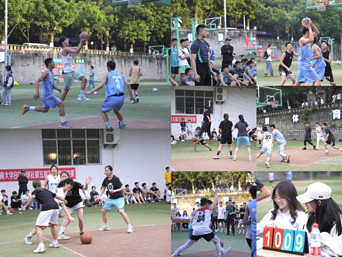 4月9日下午1点,由文新学院BC篮球社举办的第五届3V3篮球联赛在重庆工商大学南区篮球场如期举行。男子组追龙队获得冠军,波动赖队获得亚军,三线肉队获得季军;女子组加油队获得冠军,啊对对队获得亚军。