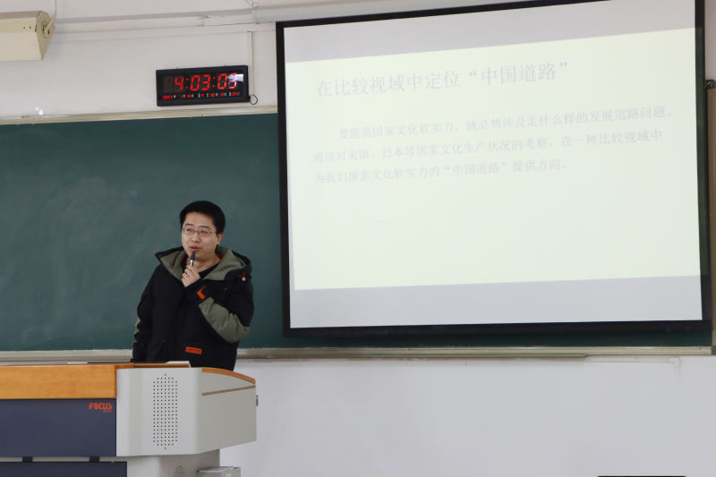 谭成主讲的题目为《新时代提高国家文化软实力的路径选择》。他结合自己的研究领域,通过对提高国家文化软实力的“美国道路”和“日本道路”的比较,提出我们要走具有突破性的“中国道路”,具体可从三个方面发力:一是深度发掘优秀传统文化和多民族文化资源;二是着力提高文化生产的原创性;三是以培育文化精品为目标进行文化体制改革。