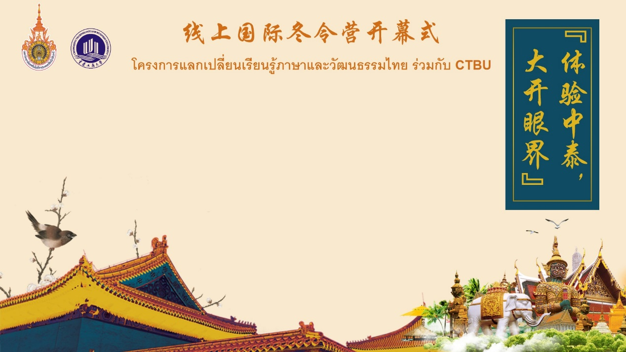 10月24日,由重庆工商大学与泰国乐得纳可信皇家理工大学合作举办的“体验中泰?大开眼界”线上冬令营正式拉开了序幕。本次活动旨在增进中泰学生的交流、拓宽学生的国际视野、促进中泰文化的沟通。冬令营开幕式于当日举行,采用了线上会议的方式。出席会议的有我校国际合作与交流处、留学生学院张轶处长(院长)、刘茜副处长、泰国乐得纳可信皇家理工大学工商学院Ajarn Watcharapol Boonsomboon院长、文学与新闻学院郑笑眉副院长,以及国际处、留学生院、文学与新闻学院和泰国乐得纳可信皇家理工大学工商学院师生代表。开幕式由国际处杜晓老师主持。