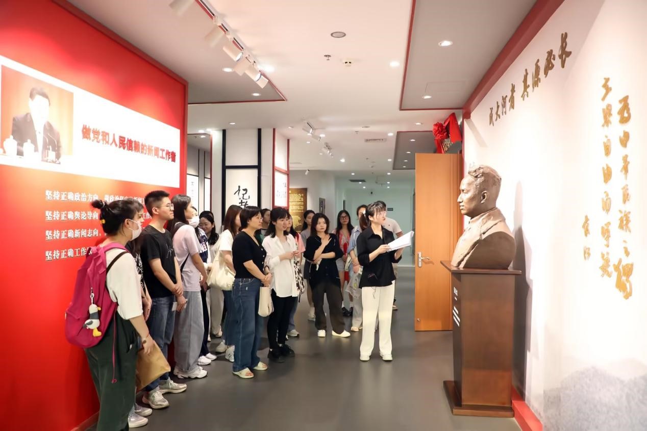 4月20日下午,文学与新闻学院党委书记于频带领研究生党支部、学生一支部、学生二支部全体党员共同参观了位于我校南岸区的全国新闻战线党史教育实践基地、重庆新闻战线党史教育实践基地——“范长江与重庆”展览馆,并结合学习贯彻习近平新时代中国特色社会主义思想主题教育开展了生动的主题党日活动。